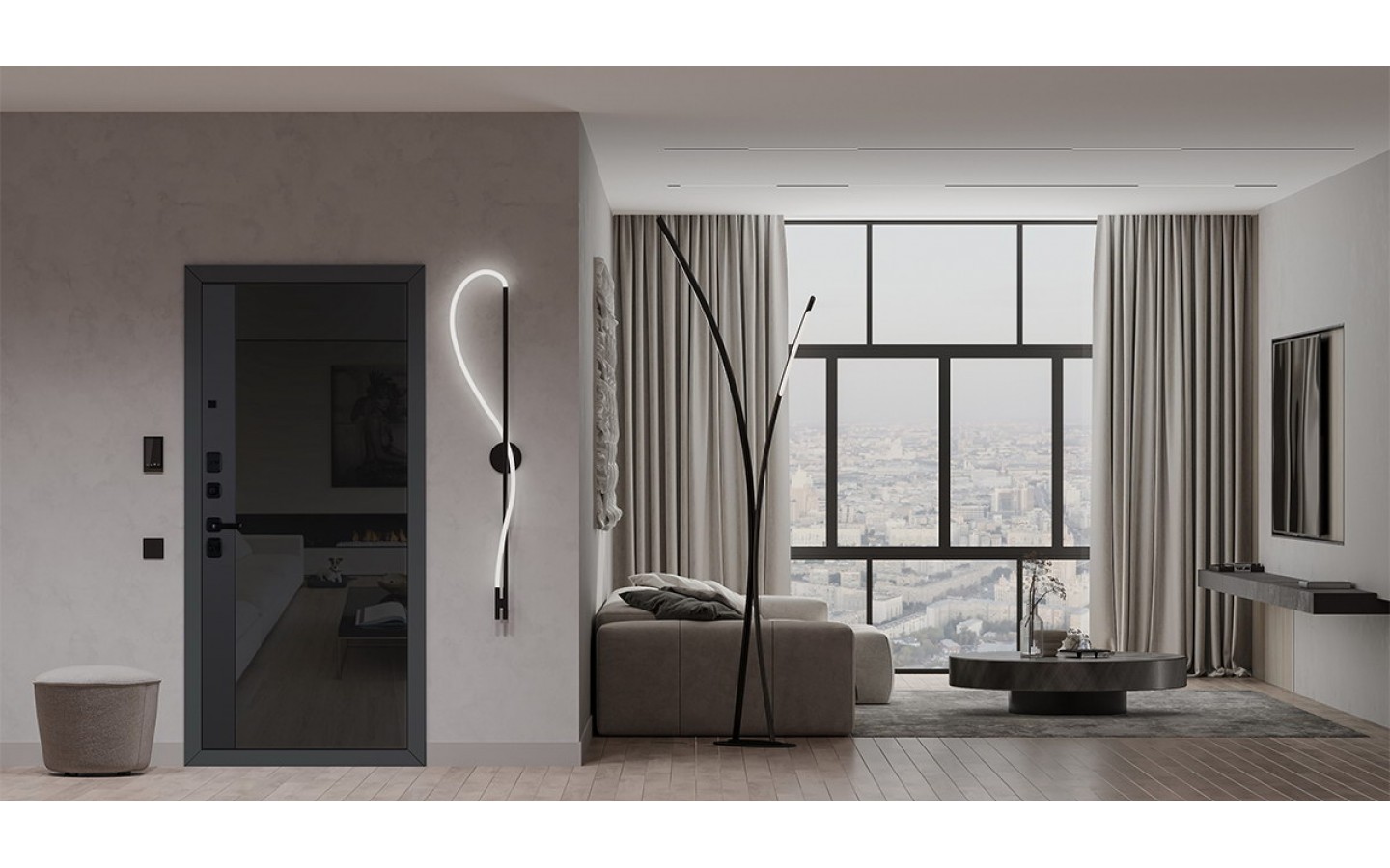 | Внутренняя отделка | Экошпонированная панель МДФ 16 мм. Цвет «графит». Широкая вставка из черного лакобеля с фацетом. |