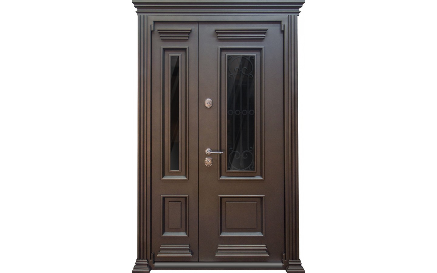 | Дополнительно | Евроцилиндр К-В (перфокарта). Броненакладка врезная. Сплошной противосъем. Защитные накладки на сувальдном замке. Порог из нержавеющей стали (цвет "хром"). |