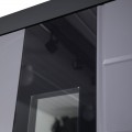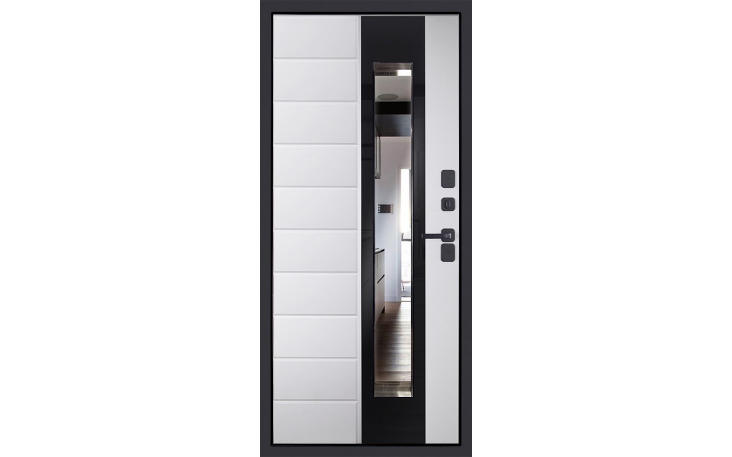 | Внутренняя отделка | Панель МДФ 12 мм. Цвет «эмалит белый». Объемная фрезеровка. Стеклопакет. Декоративный накладной элемент из черного лакобеля. |