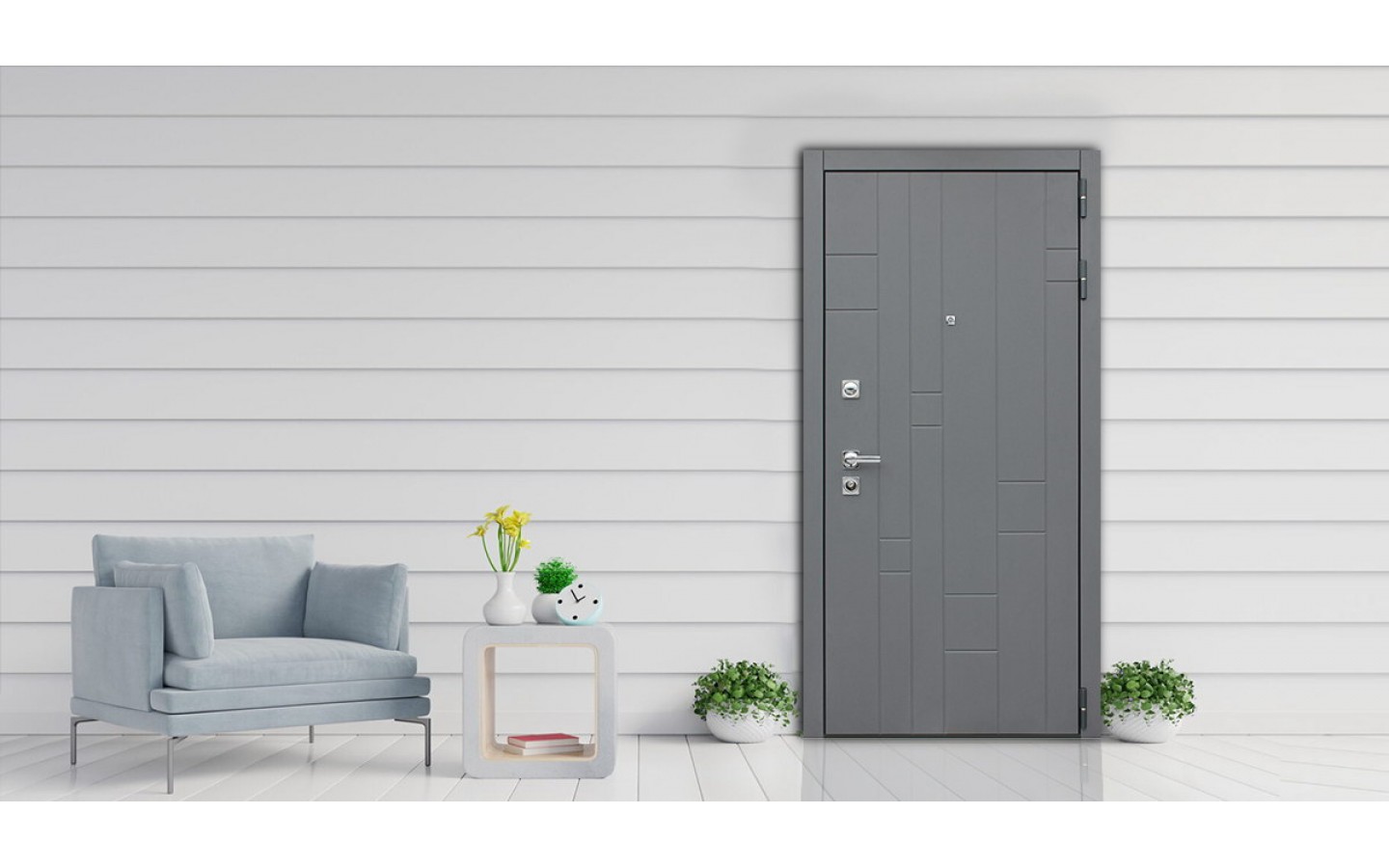 | Внутренняя отделка | Экошпонированная панель МДФ 10 мм. Объёмная фрезеровка. Цвет «бетон серый TF 22 IE-1- 73». |