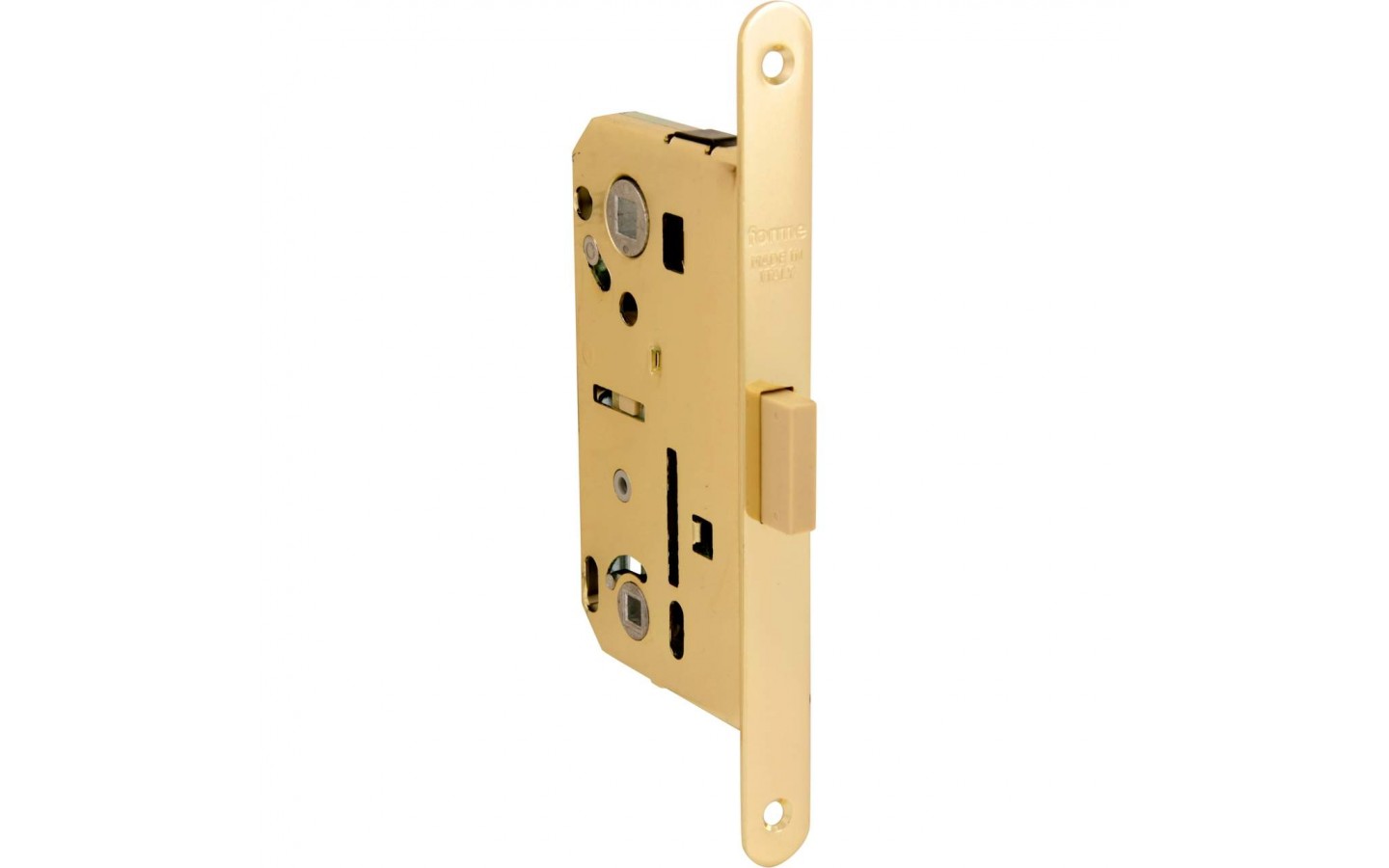 Замок врезной Magnetico F140.12.02 Wc сантехнический c ответной планкой и шурупами, латунь полированная производство Forme Италия