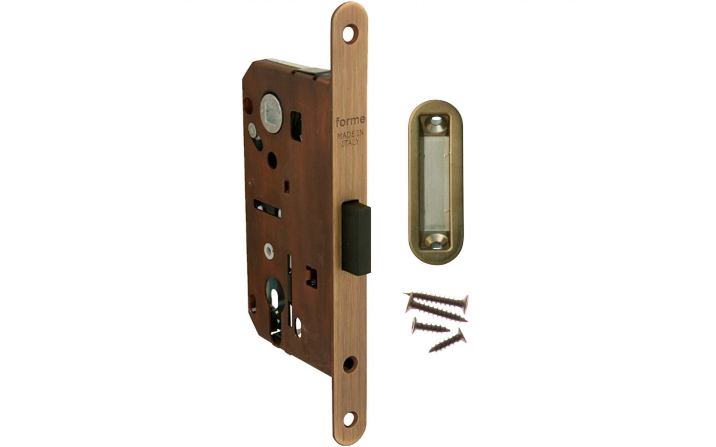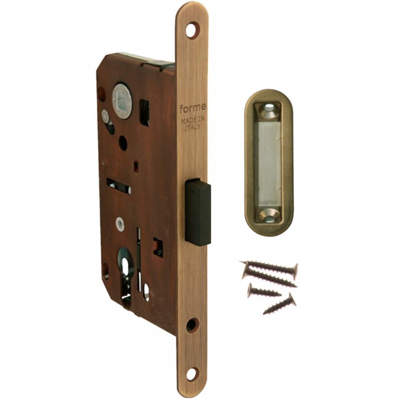 Замок врезной Magnetico F140.12.31 Wc-95mm сантехнический c ответной планкой и шурупами, Бронза производство Forme Италия