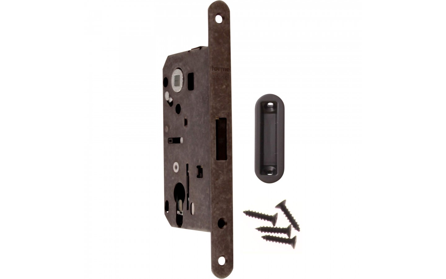 Замок врезной Magnetico F140.13.49 Cyl цилиндрический c ответной планкой и шурупами, Античное серебро производство Forme Италия