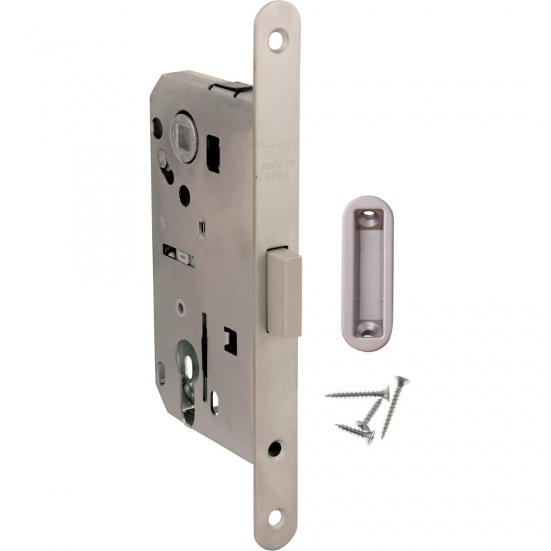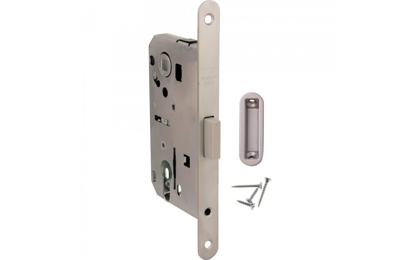 Замок врезной Magnetico F140.13.51 Cyl цилиндрический c ответной планкой и шурупами, хром матовый производство Forme Италия