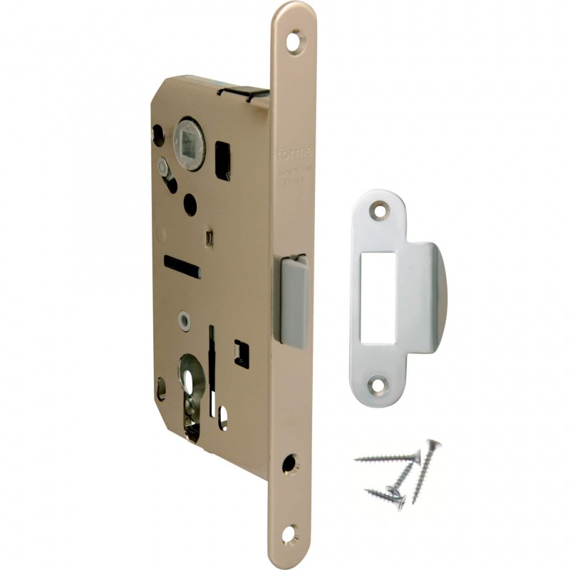 Замок врезной MECCANICO F120.13.50 Cyl цилиндрический с ответной планкой и шурупами, ПОЛИРОВАННЫЙ ХРОМ производство Forme Италия