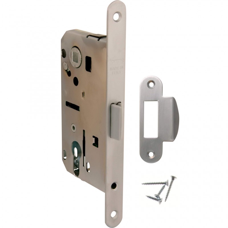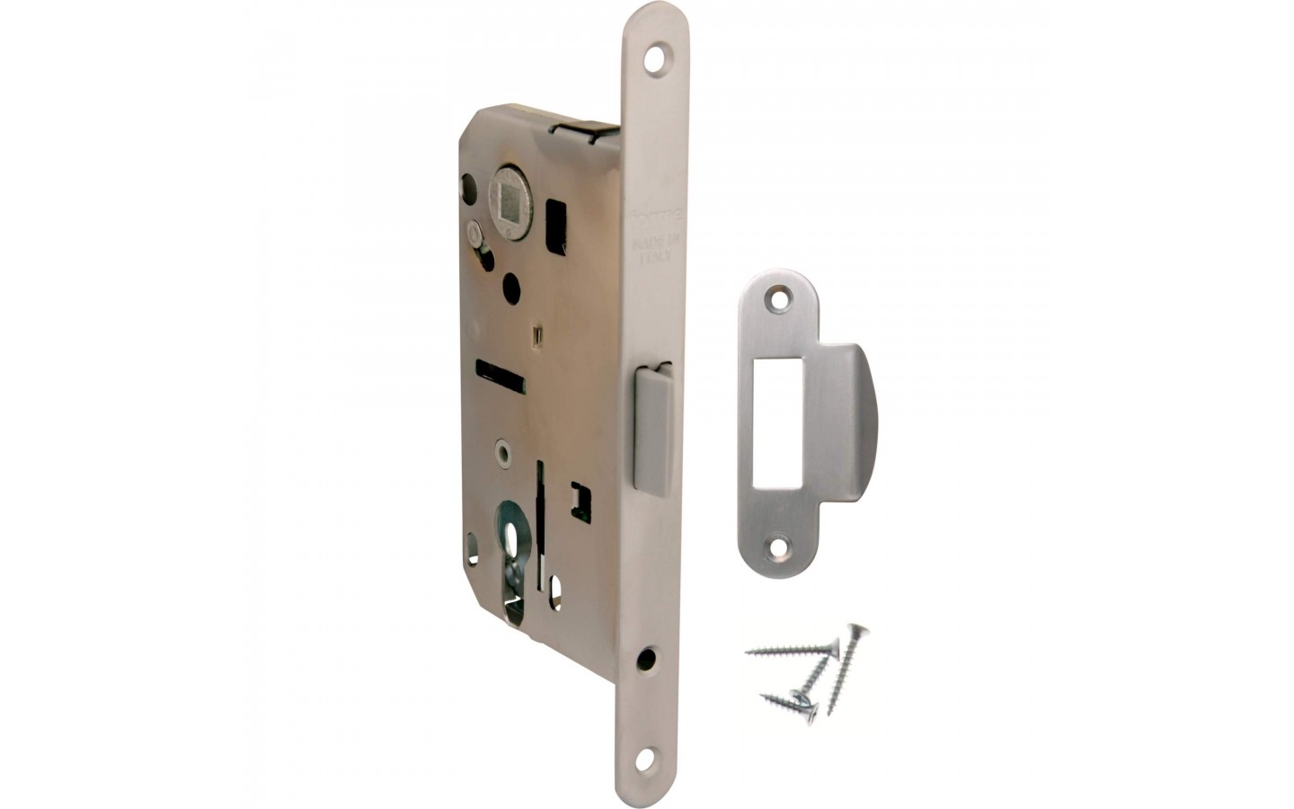 Замок врезной MECCANICO F120.13.51 Cyl цилиндрический с ответной планкой и шурупами, МАТОВЫЙ ХРОМ производство Forme Италия
